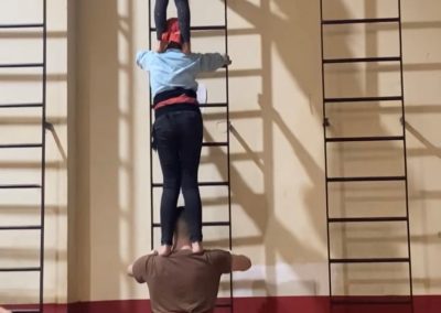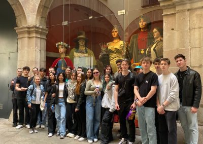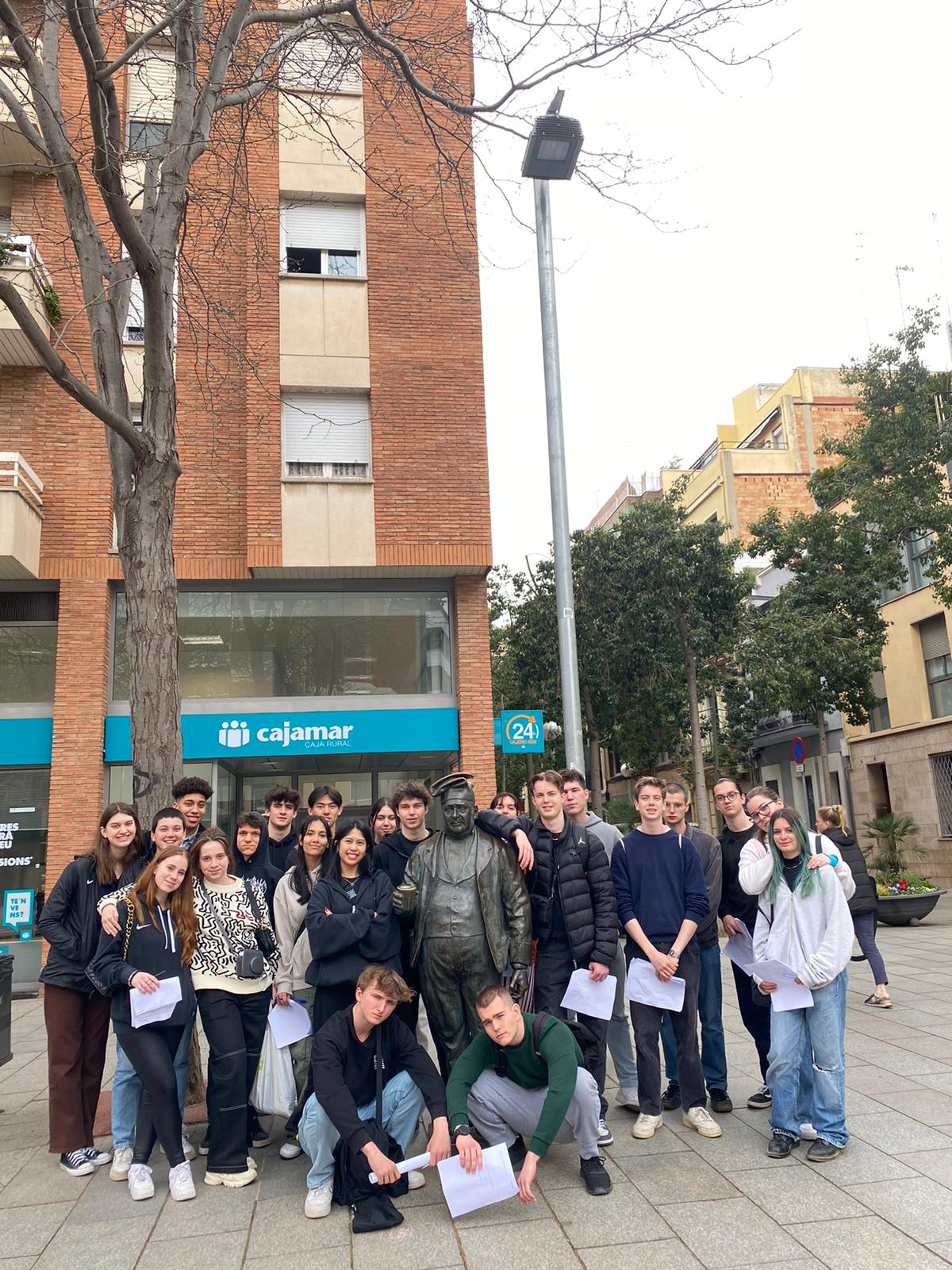 Am ersten Tag bekamen wir eine Stadtführung, bei der wir interessante Fakten über Barcelona erfuhren. Danach hatten wir unsere erste Unterrichtsstunde in einer Sprachschule, wo wir noch mehr über Barcelona und die Sprache lernten. Nach dem Unterricht hatten wir die Möglichkeit, die Colla Castellers zu besuchen. Wir waren alle von ihren Tricks und ihrer Leistung verblüfft. Jovan Markovic (7B) hat sich sogar getraut, mitzumachen (siehe Foto). Starke Leistung Jovan!