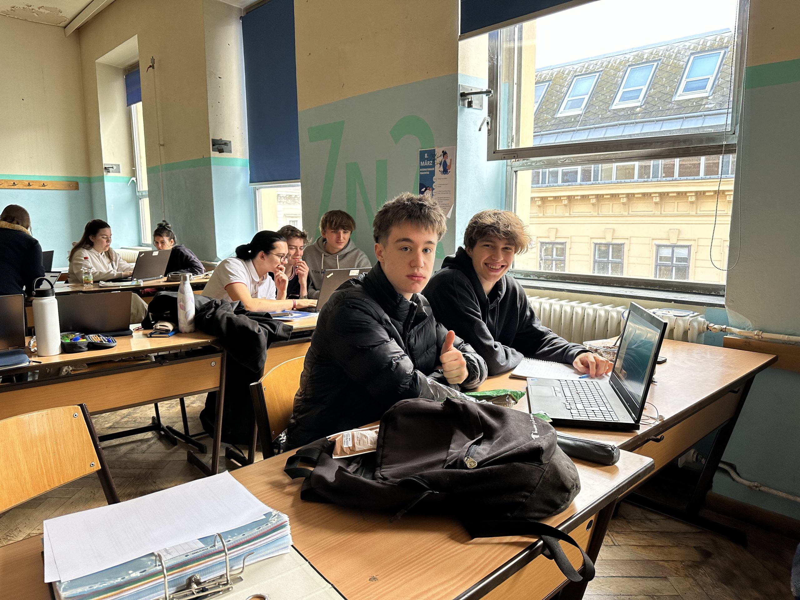 Mitte der Woche fand das Highlight für die 7A statt: Die Klasse durfte eine Exkursion zur Luftburg – Kolarik im Prater machen, dem größten Bio-Restaurant der Welt. Dort bekamen die Jugendlichen einen praktischen Einblick, wie und wo Unternehmen CO2 einsparen können. Herr Kolarik und Frau Hartl von LET’S GO FOR ZERO standen den Schüler:innen für ihre zahlreichen Fragen zur Verfügung und gaben ihnen außerdem Feedback für ihre Projektideen im Haus der Musik.