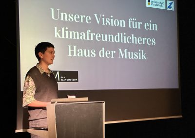 Die Auftaktveranstaltung begann an Tag 1 im Haus der Musik, wo die Schüler:innen auf einem Rundgang mit dem Nachhaltigkeitsbeauftragten Herrn Weihermüller die einzelnen Bereiche des Museums genauer unter die Lupe nehmen durften. Auf Basis dieses Rundgangs identifizierten die Jugendlichen Potentiale für nachhaltige Maßnahmen und entwickelten entsprechende Forschungsfragen.
