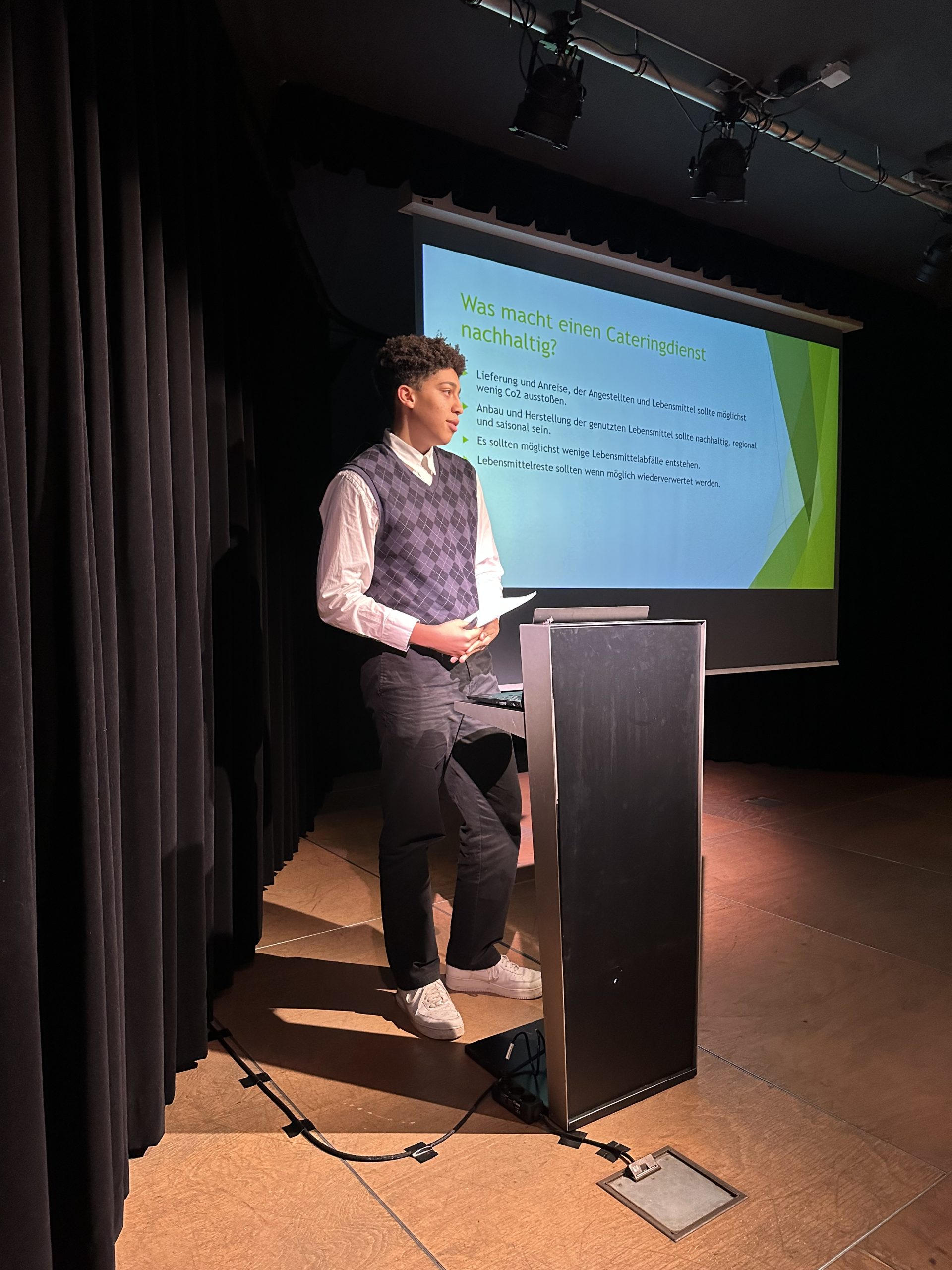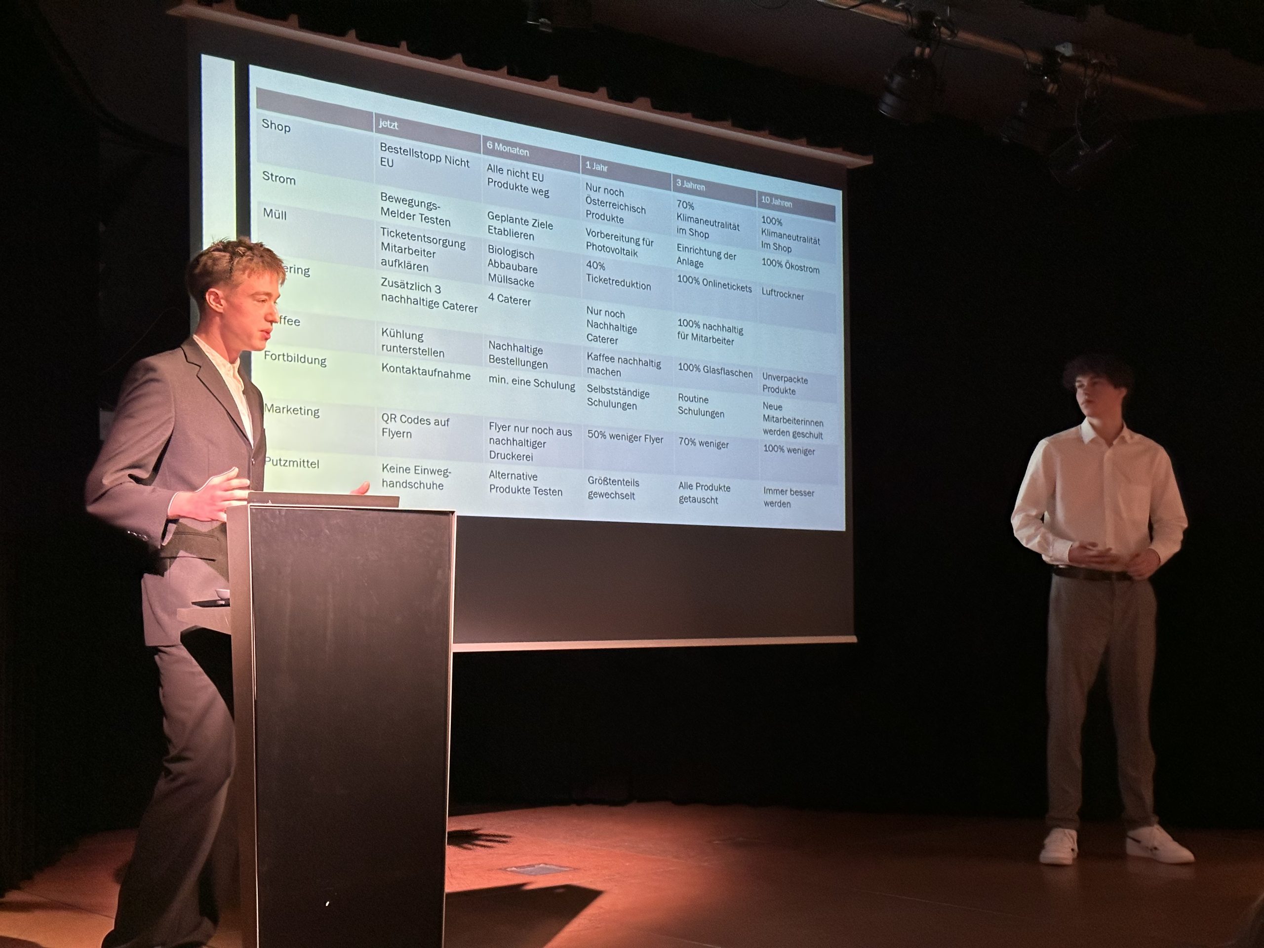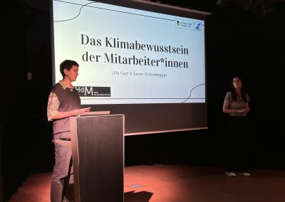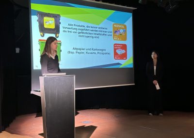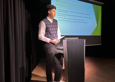 Die detaillierten Projektideen überzeugten mit konkreten Alternativen und beinhalteten sowohl kurzfristige als auch langfristige Ziele. Sie befassten sich mit folgenden Themenbereichen: Schulungen für Mitarbeiter:innen, Stromeinsparpotentiale, besseres Müllrecycling, nachhaltige Shop-Produkte, Cateringkonzepte und Hygieneprodukte, klimafreundliches Marketing sowie Automatenprodukte. Herr Weihermüller bedankte sich im Namen Aller bei der 7A für ihre großartigen Vorschläge und Ausarbeitungen.