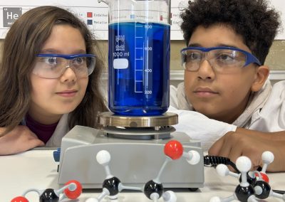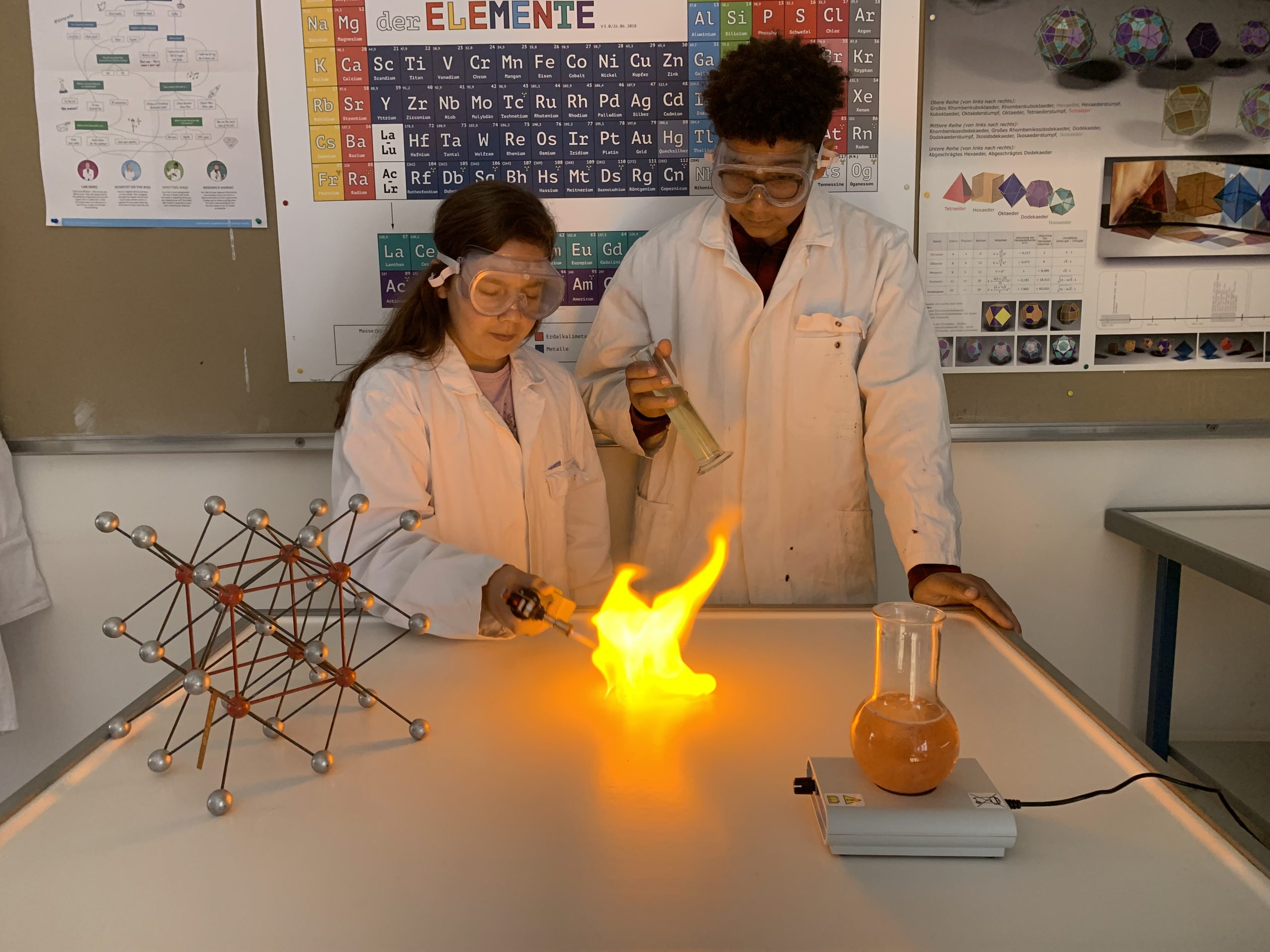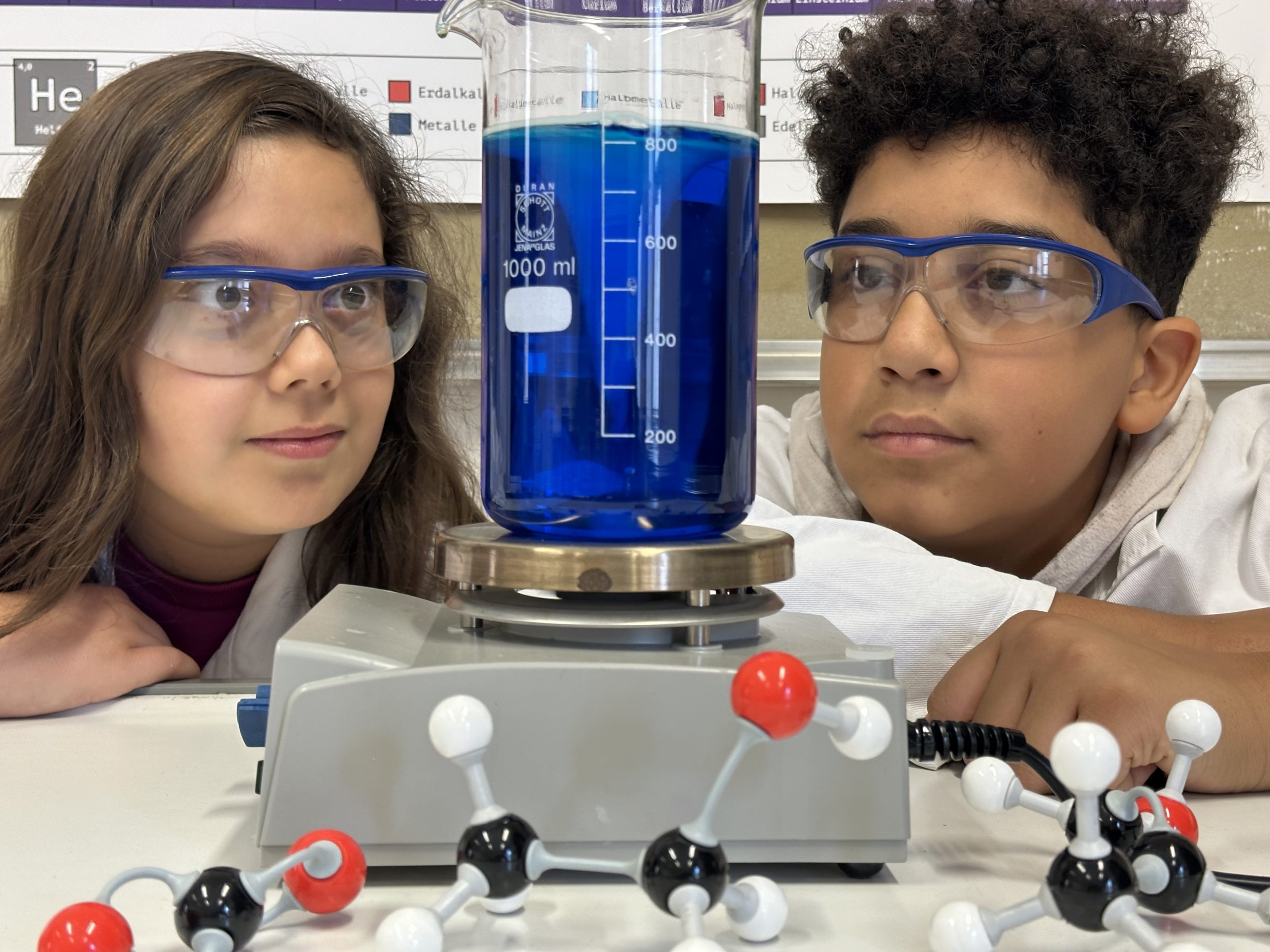 Das Siegerfoto für das Plakat, welches auch im Chemiesaal ausgehängt wurde, zeigt die Schüler:innen Blanka Fuckenrieder aus der 2B und Marcel Smith-Edogun aus der 3C.