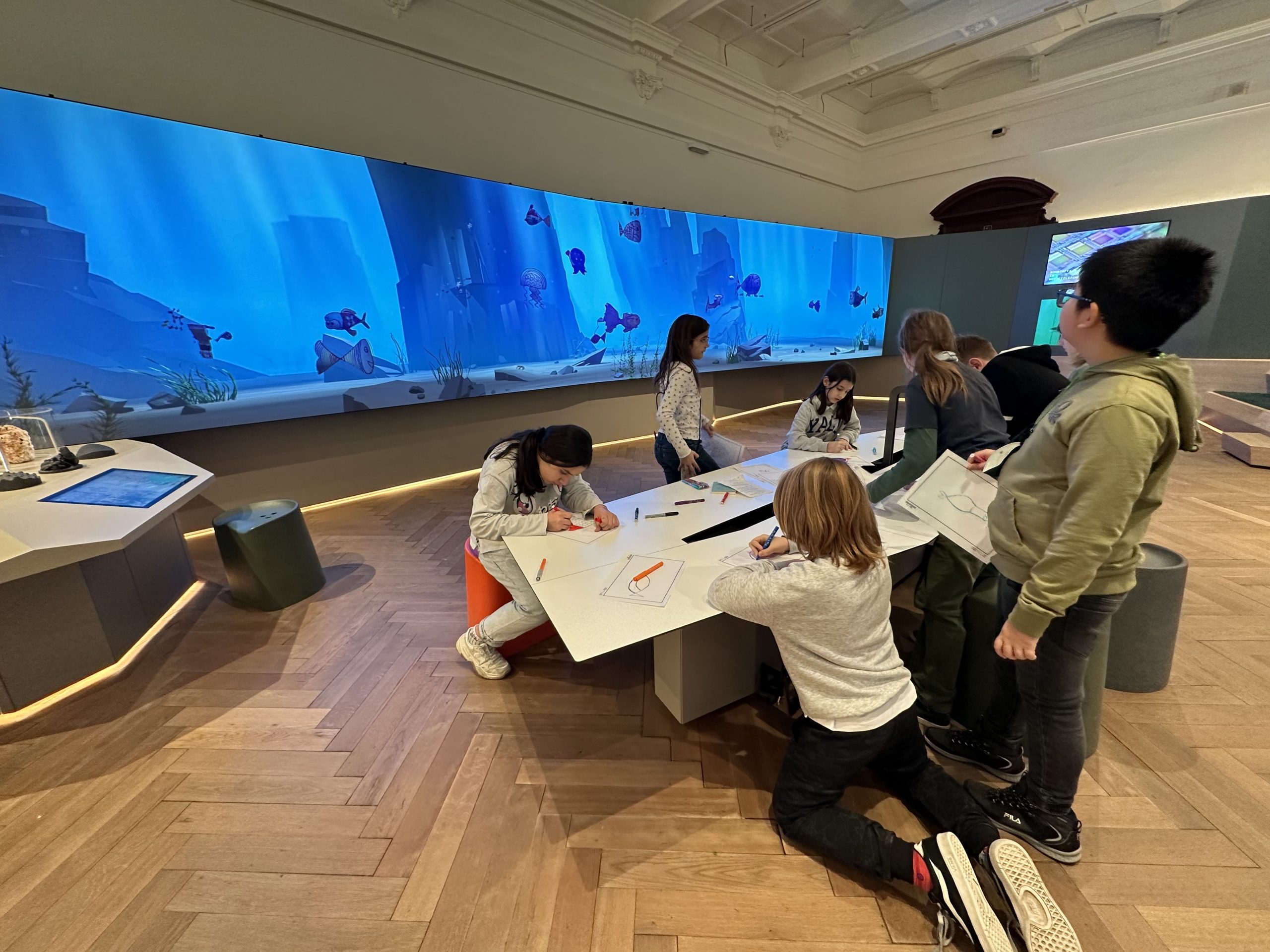 Am 12.12.22 besuchten die NAWI-Schüler:innen das Naturhistorische Museum und sahen sich die Dauerausstellung „Systematik der Tiere“ an. Am Besten gefiel ihnen jedoch die Möglichkeit im Deck 50 Meerestiere zu zeichnen und sie direkt in eine Dauerprojektion einzubringen.