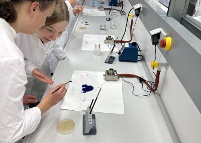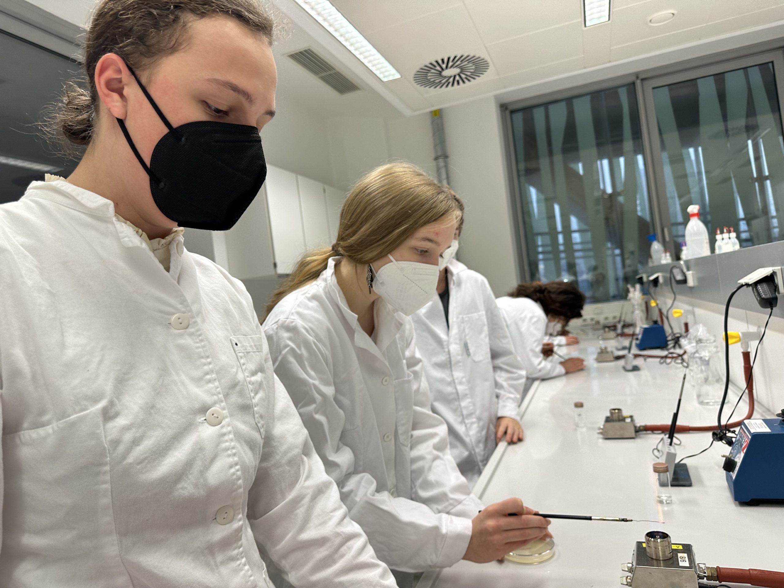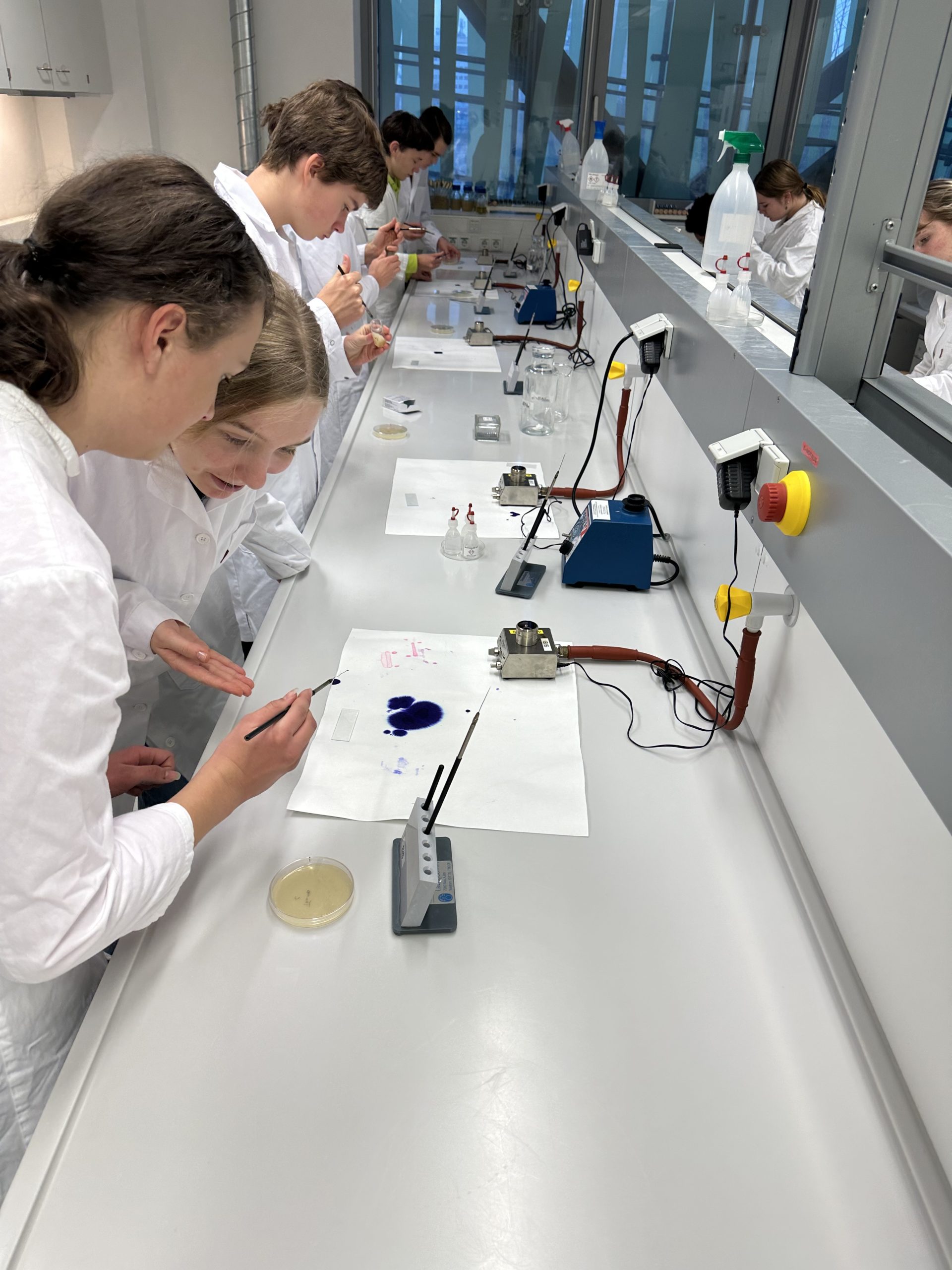 Die Schüler:innen lernten Nasspräparate herzustellen, Petrischalen zu beimpfen und an Hand morphologischer Eigenschaften verschiedene Schimmelpilze zu identifizieren, die Keimzahl zu bestimmen sowie Bakterienstämme mittels Gramfärbung zu unterschieden.