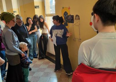 Bei der Abschlussveranstaltung am 18. März 2024 präsentierten die Schüler:innen dem Publikum, bestehend aus Lehrer:innen, Schüler:innen sowie Gästen von der TU Wien, der Akademie der bildenden Künste und dem OeAD, ihre jeweiligen Touren. Anschließend fand eine Podiumsdiskussion statt, die sich den Fragen widmete, wie viel Gestaltung für die Nutzer:innen eines Schulhauses angenehm ist, wie Kunst von Beschmierung und Vandalismus zu unterscheiden ist und welche Möglichkeiten der Gestaltung für die neu renovierte Schule in der Zirkusgasse wünschenswert wären.