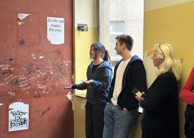 Die kunterbunte Vielfalt von gewollten/ungewollten, schönen und nicht so schönen Arbeiten wurde nun von der 7A gesichtet und diskutiert. Die Schüler:innen erarbeiteten daraufhin in Kleingruppen geführte Touren zu selbst gewählten Schwerpunkten: