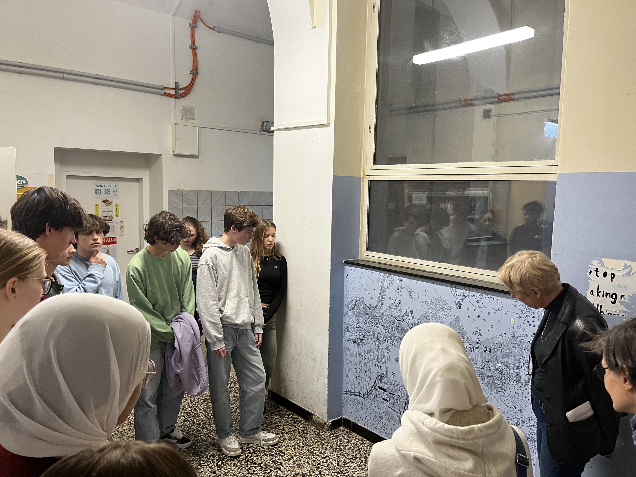 Die 7A hat sich im Kunst-Unterricht im Rahmen eines Projektes mit dem Verein Wanderklasse mit den Wandgestaltungen im Schulhaus in der Hegelgasse auseinandergesetzt.