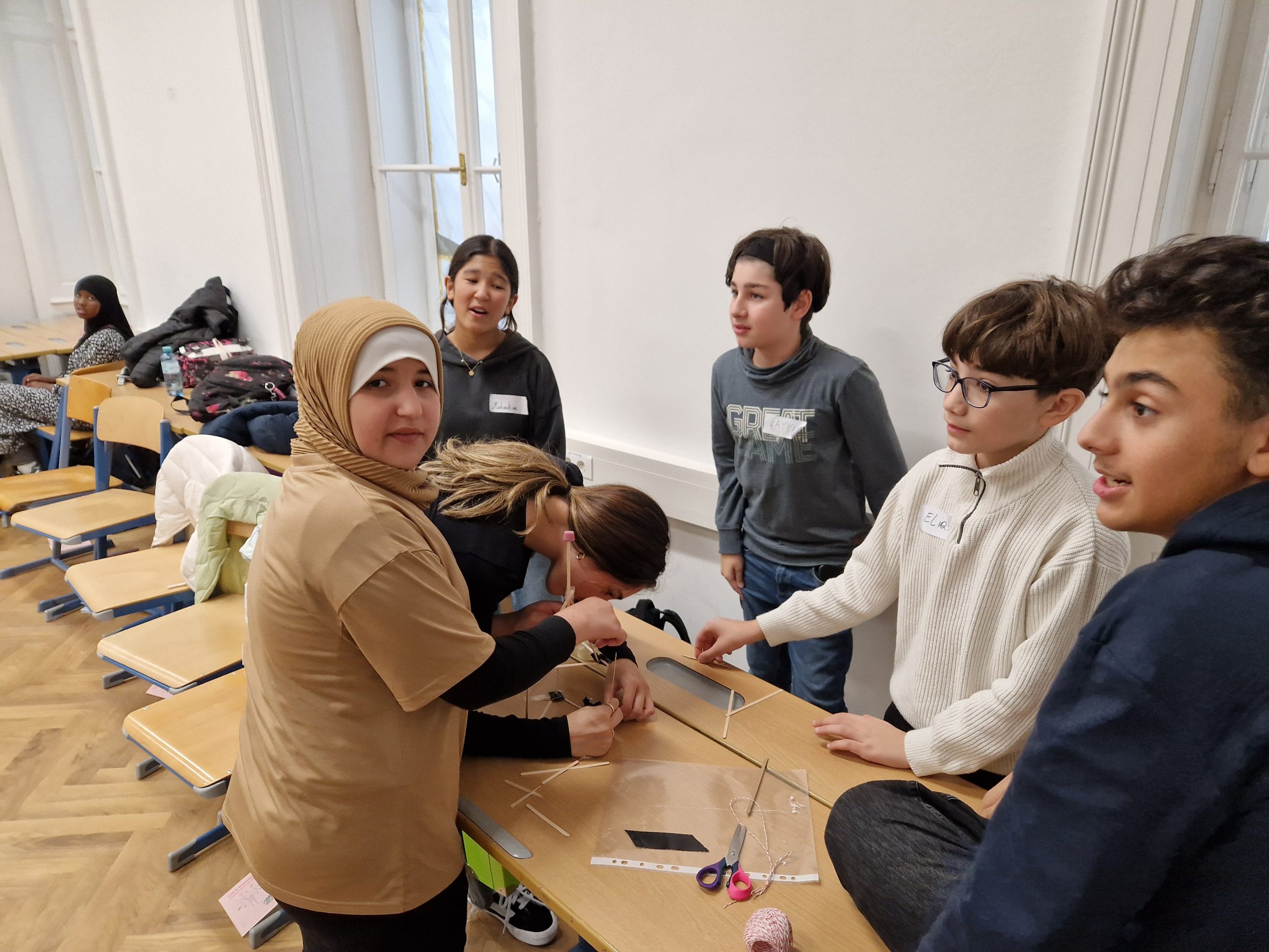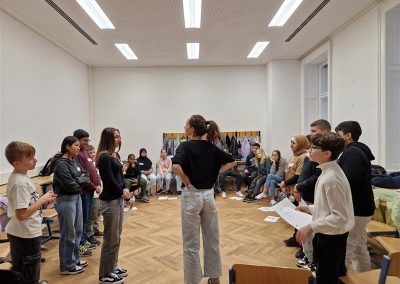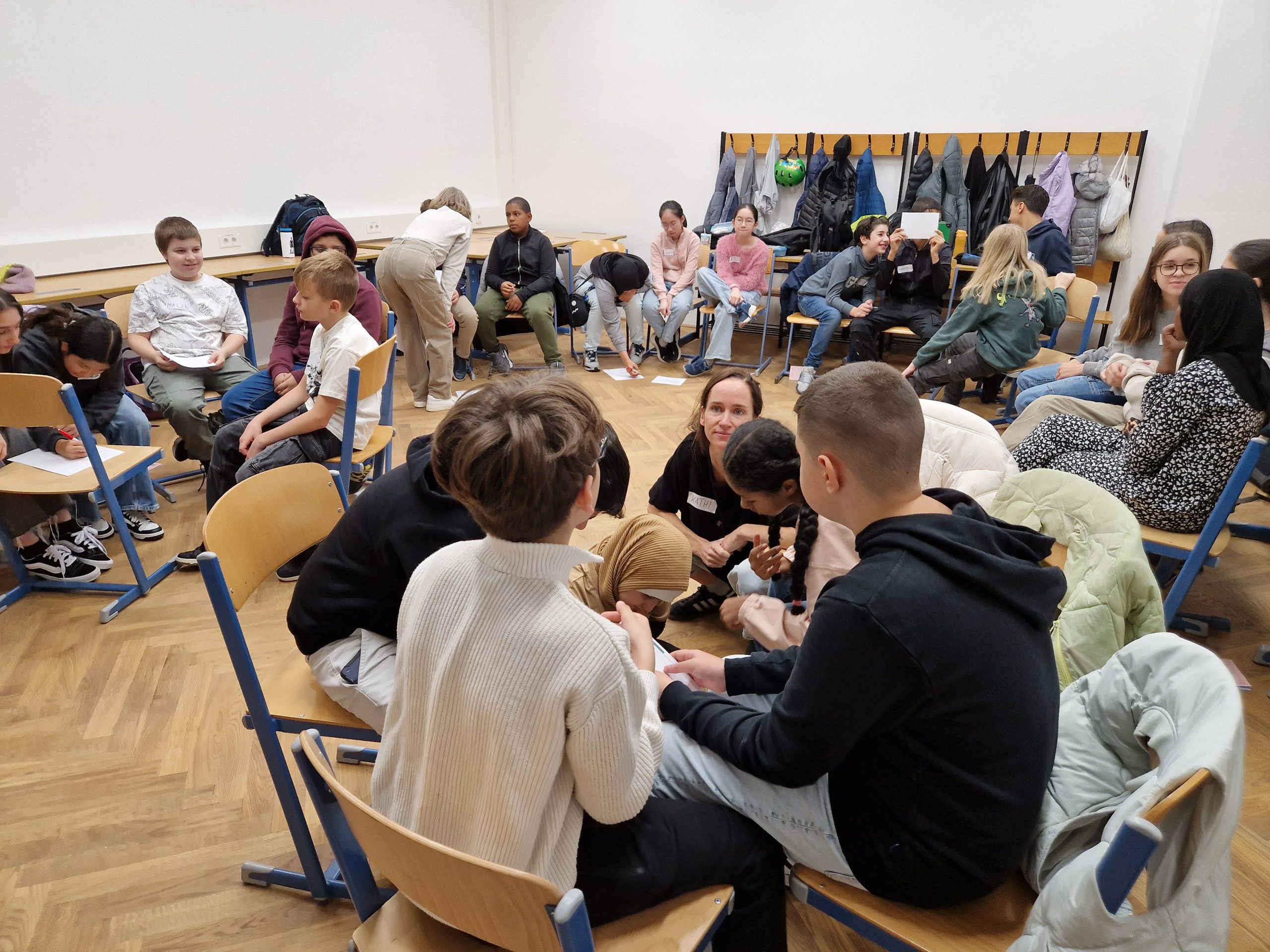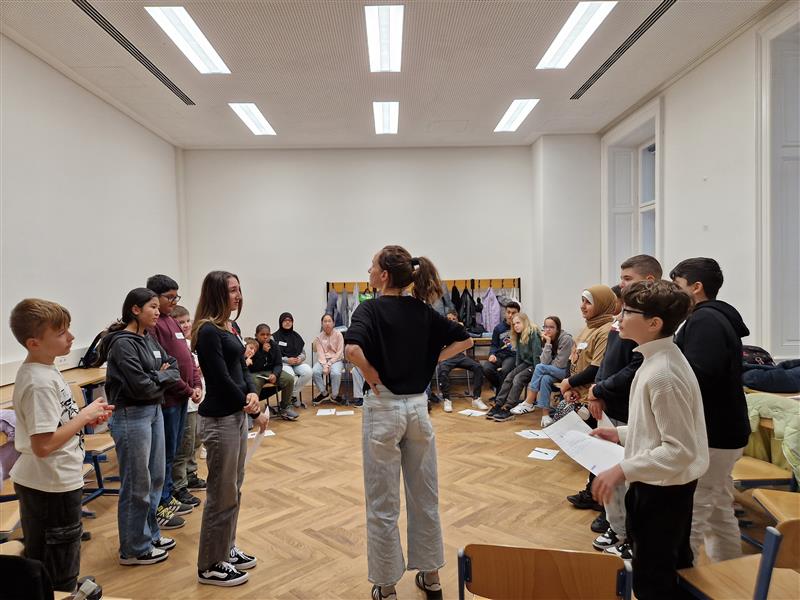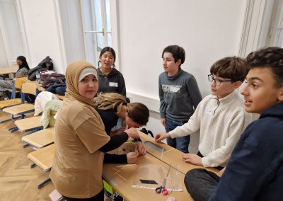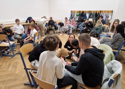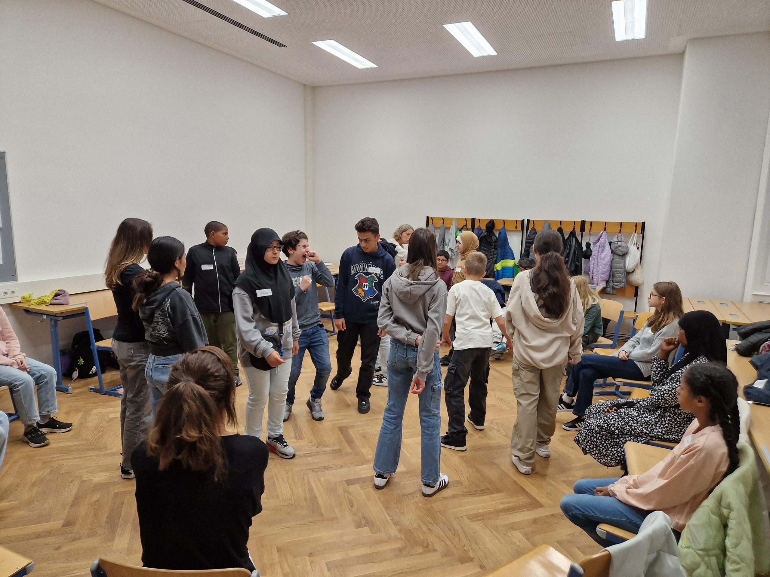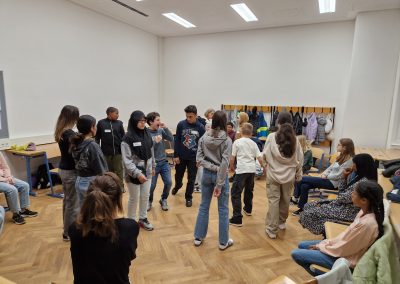 Die Schülerinnen und Schüler der Klasse 2B nahmen im Winter an einem Workshop zur Förderung der Klassengemeinschaft teil. Im Mittelpunkt der Übungen stand vor allem die Förderung der Teamarbeit. In Kleingruppen mussten die Kinder beispielsweise aus vorgegebenem Material gemeinsam einen hohen Turm bauen. Dabei gab es einige Regeln zu beachten, und es war notwendig, dass sich alle aktiv einbrachten, um die Aufgabe erfolgreich zu lösen. Die Workshopleiterinnen unterstützten die Kinder bei Unstimmigkeiten und halfen dabei, die Konfliktfähigkeit der Klasse weiterzuentwickeln.