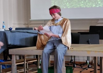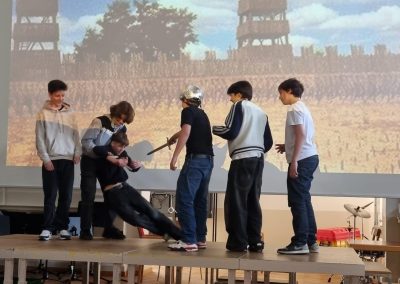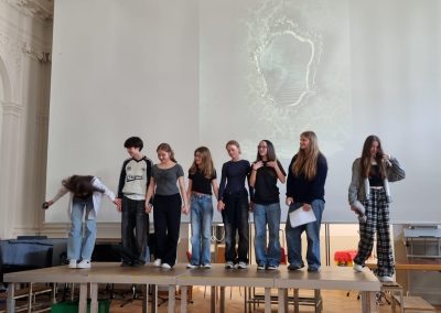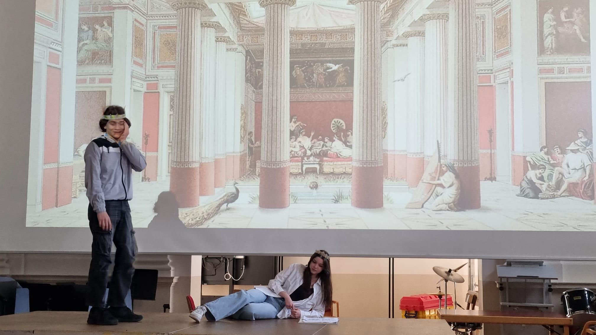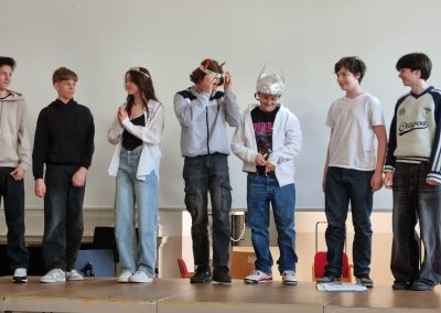 Von 22. bis 23, April fanden Französisch-Projekttage in der 4BC statt. Gemeinsam mit Frau Prof. Straka und Frau Prof. Crapouse-Wünsch, mit familiärer Unterstützung durch zwei MuttersprachlerInnen, wurde an den Vormittagen gekocht, gegessen und im Festsaal Theater gespielt, es wurden Märchenrollen einstudiert und Bonbons und kandierte Blütenblätter verkostet. Alle waren mit großem Eifer dabei, und es machte Spaß, sich der französischen Sprache und Kultur spielerisch und kulinarisch anzunähern.