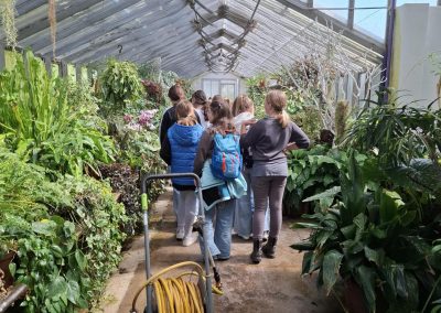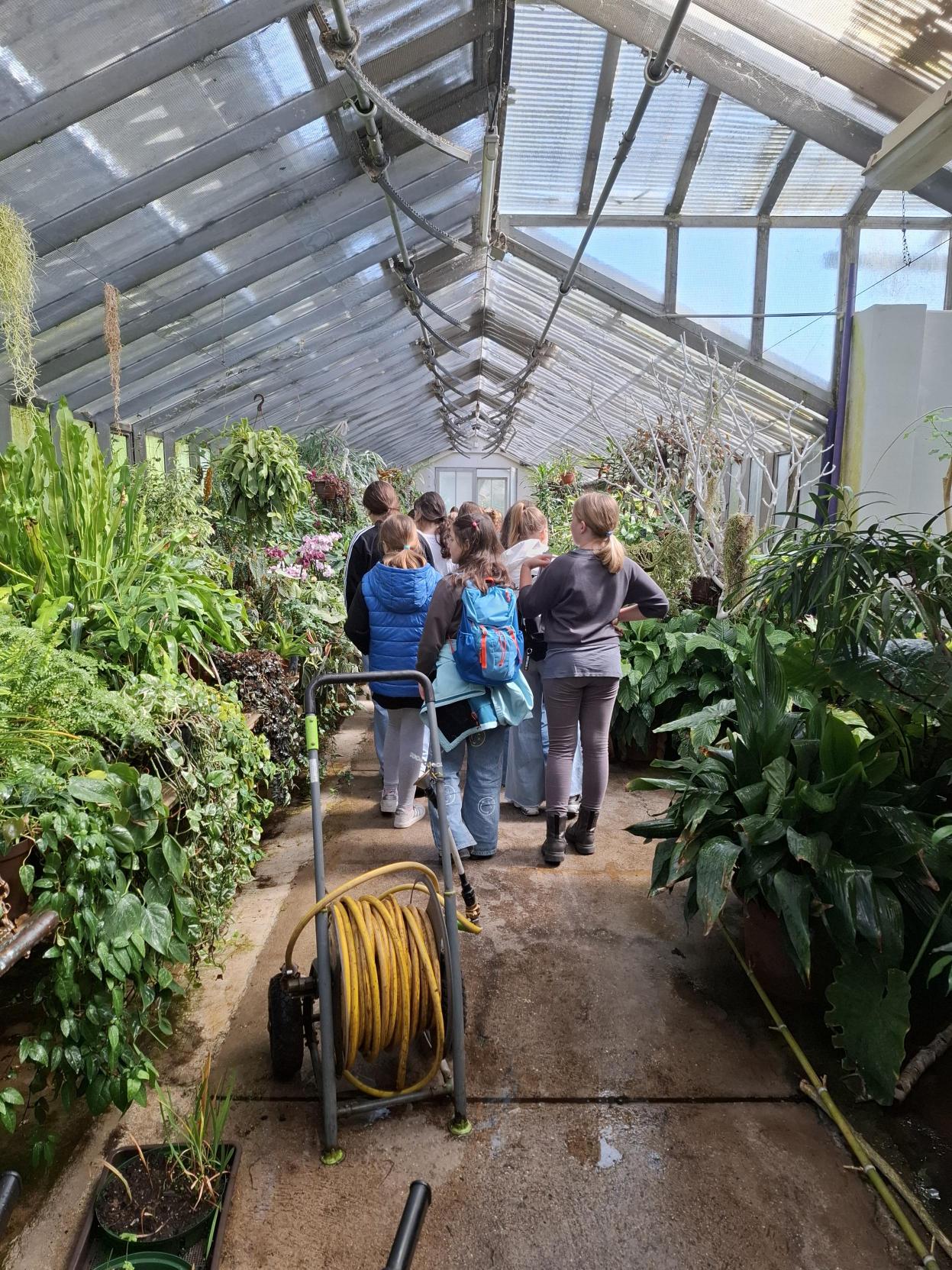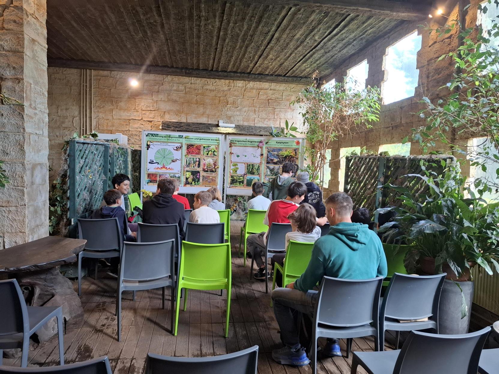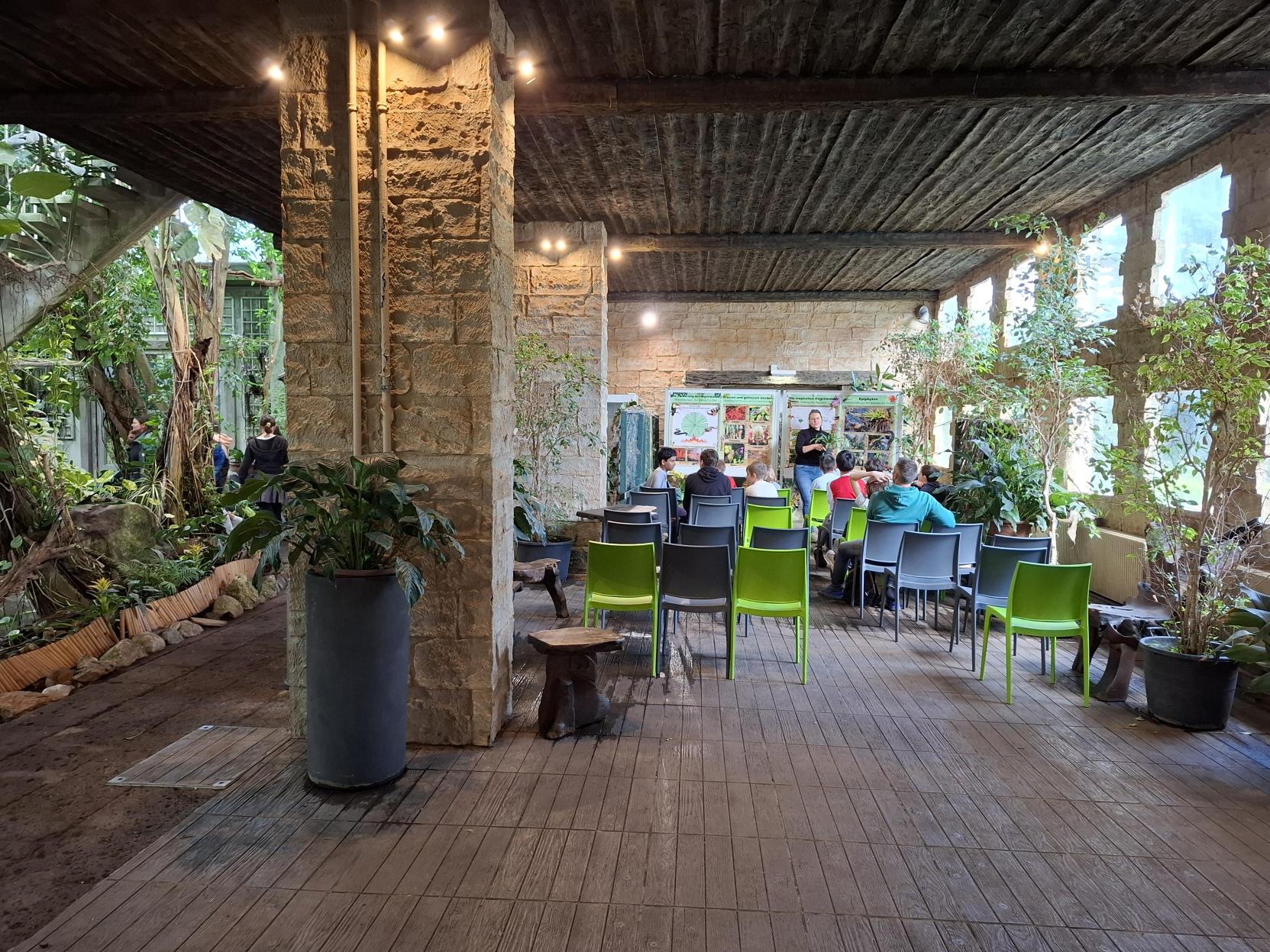 Der Weg führte zunächst durch das Palmenhaus entlang des Äquators und weiter in den tropischen Regenwald. Dort lernten die Kinder vielfältige Pflanzenarten kennen – von solchen, die in engen Lebensgemeinschaften wachsen, bis hin zu Pflanzen, die im ständigen Überlebenskampf mit Klima, Tieren oder anderen Pflanzen stehen.