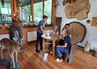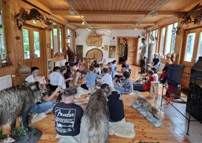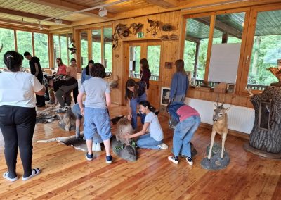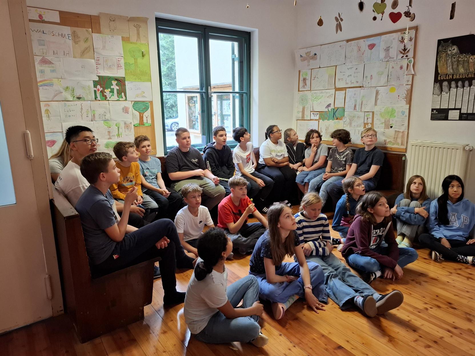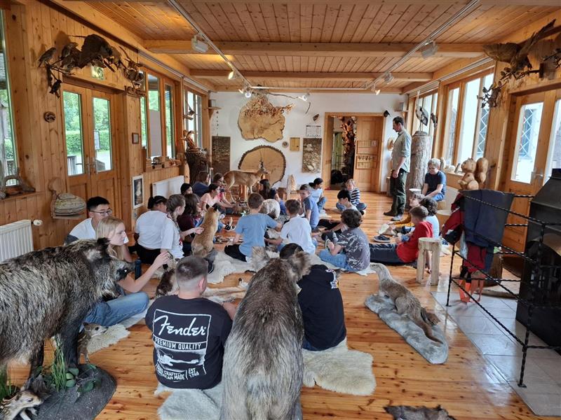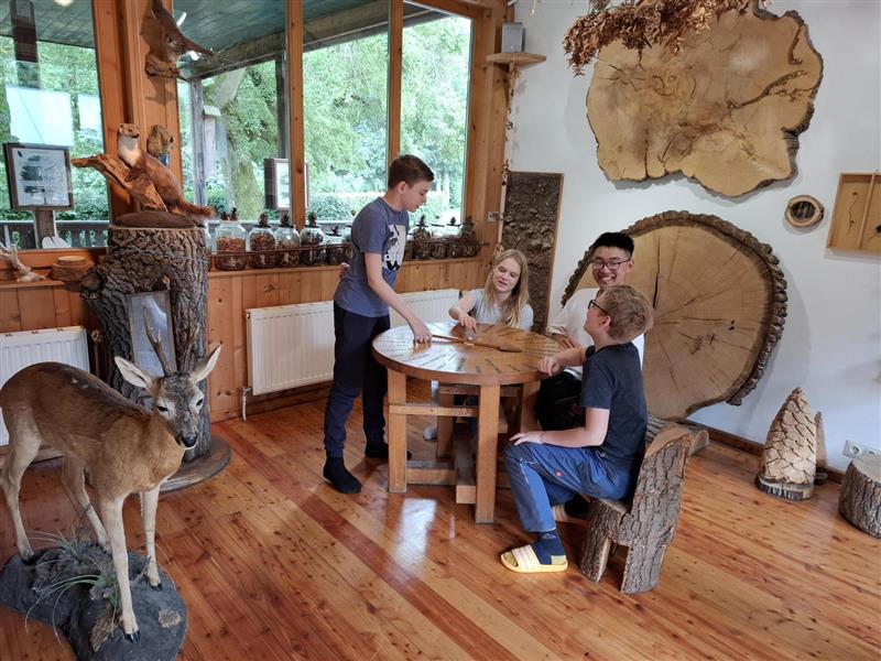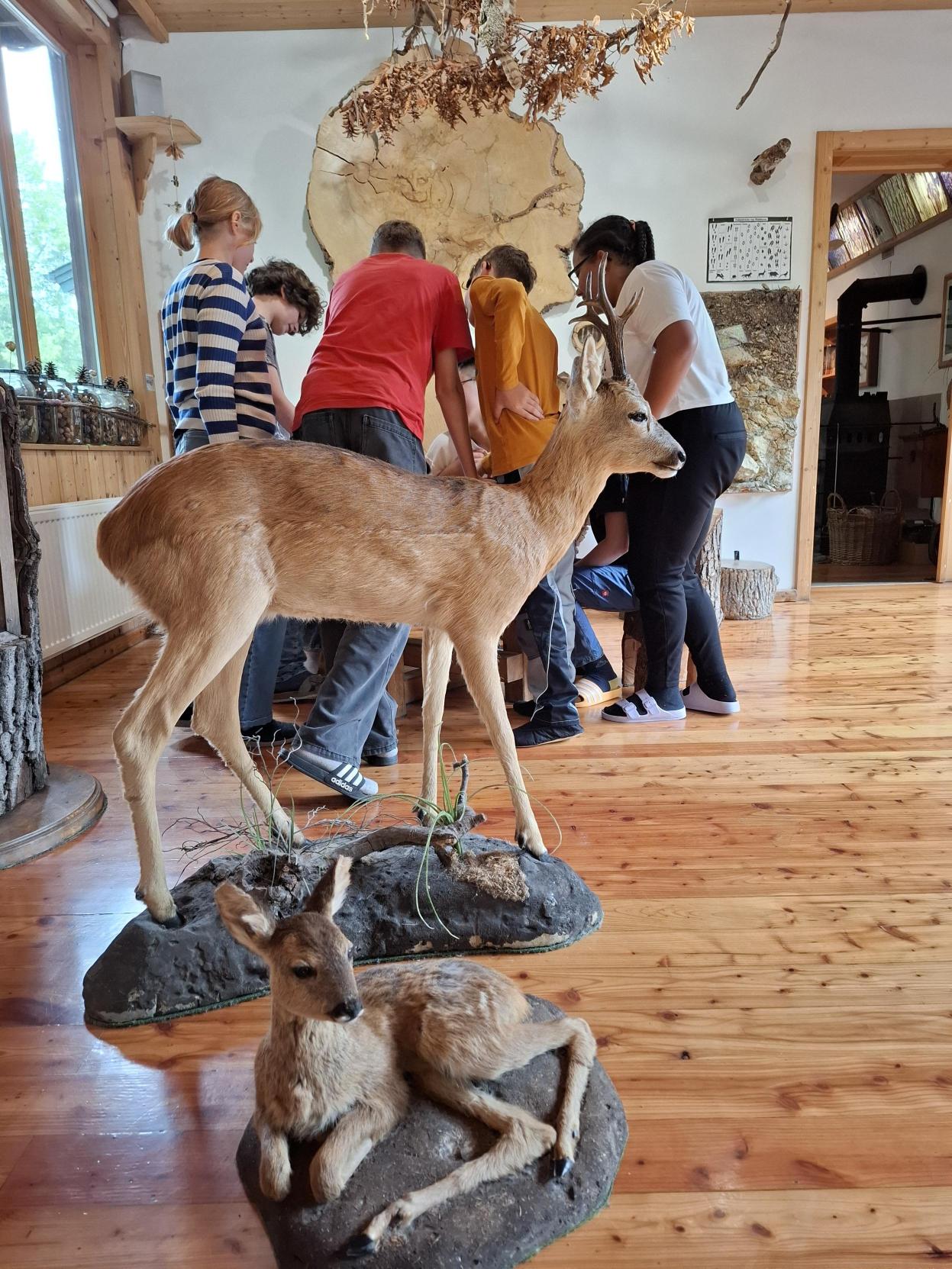 In der Waldschule erwarteten die Kinder viele interessante und „angreifbare“ Exponate wie Stammscheiben, Geweihe und präparierte Wildtiere, die sogar gestreichelt werden durften. Durch das direkte Erleben und Anfassen konnten die Kinder viel über den Wald und seine Bewohner lernen.