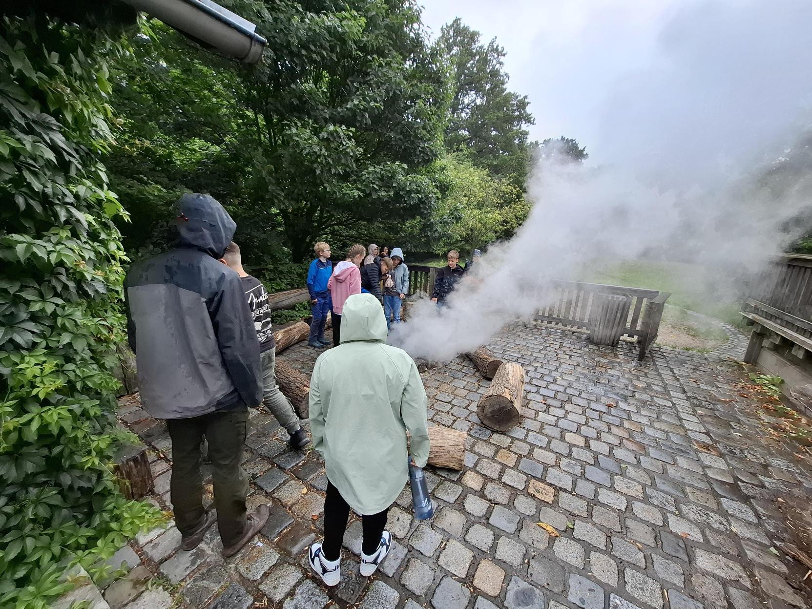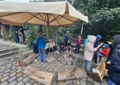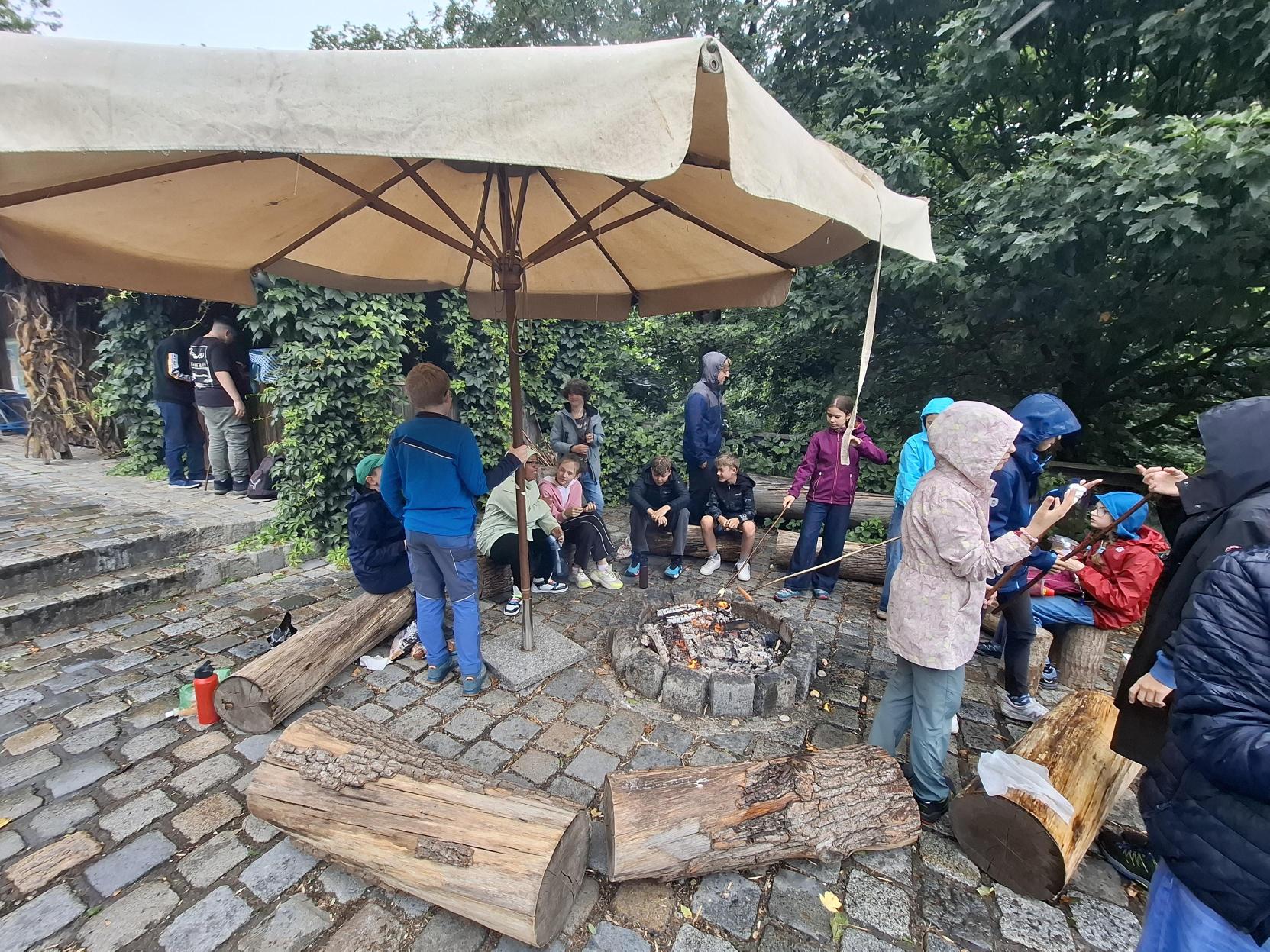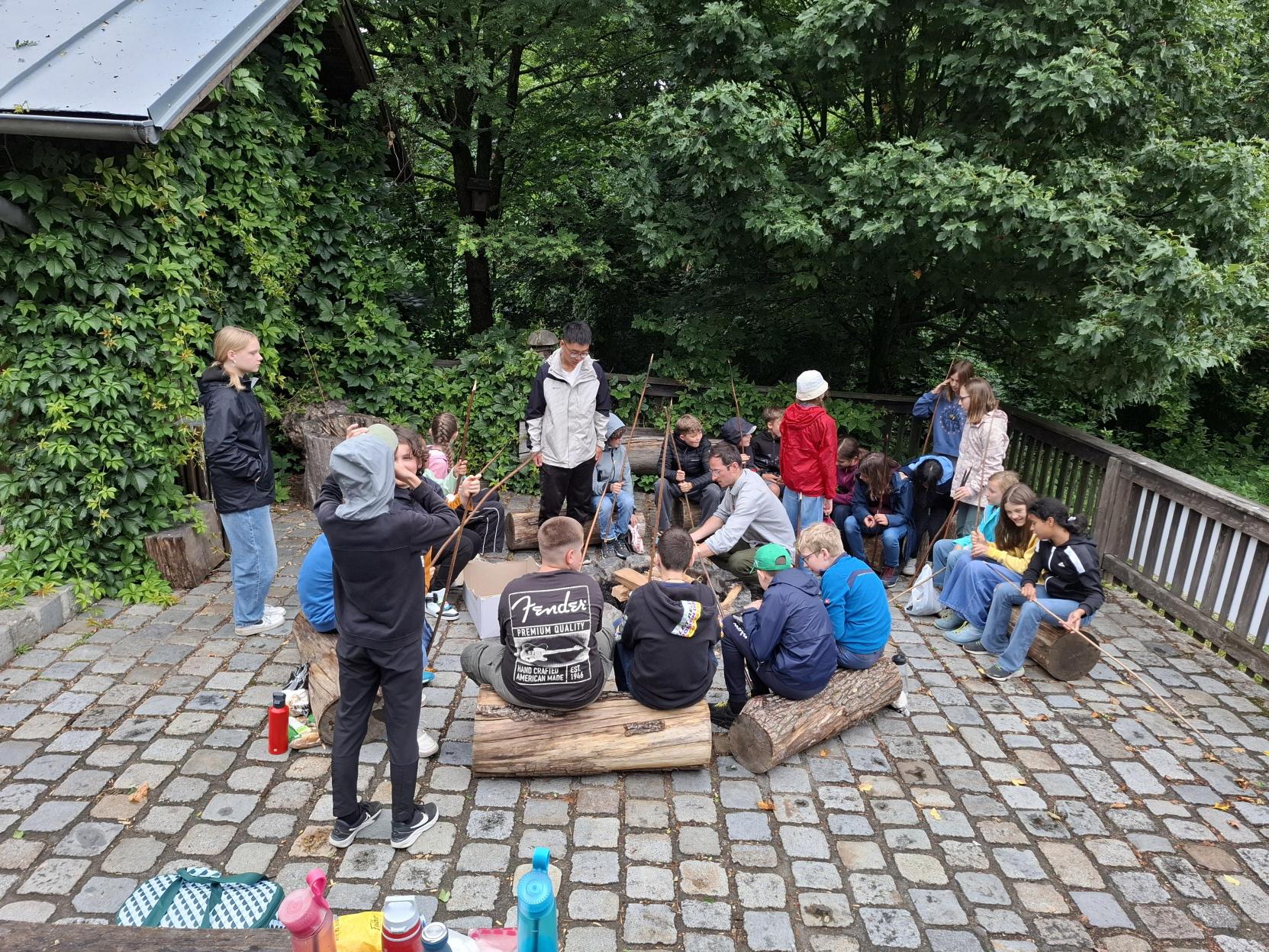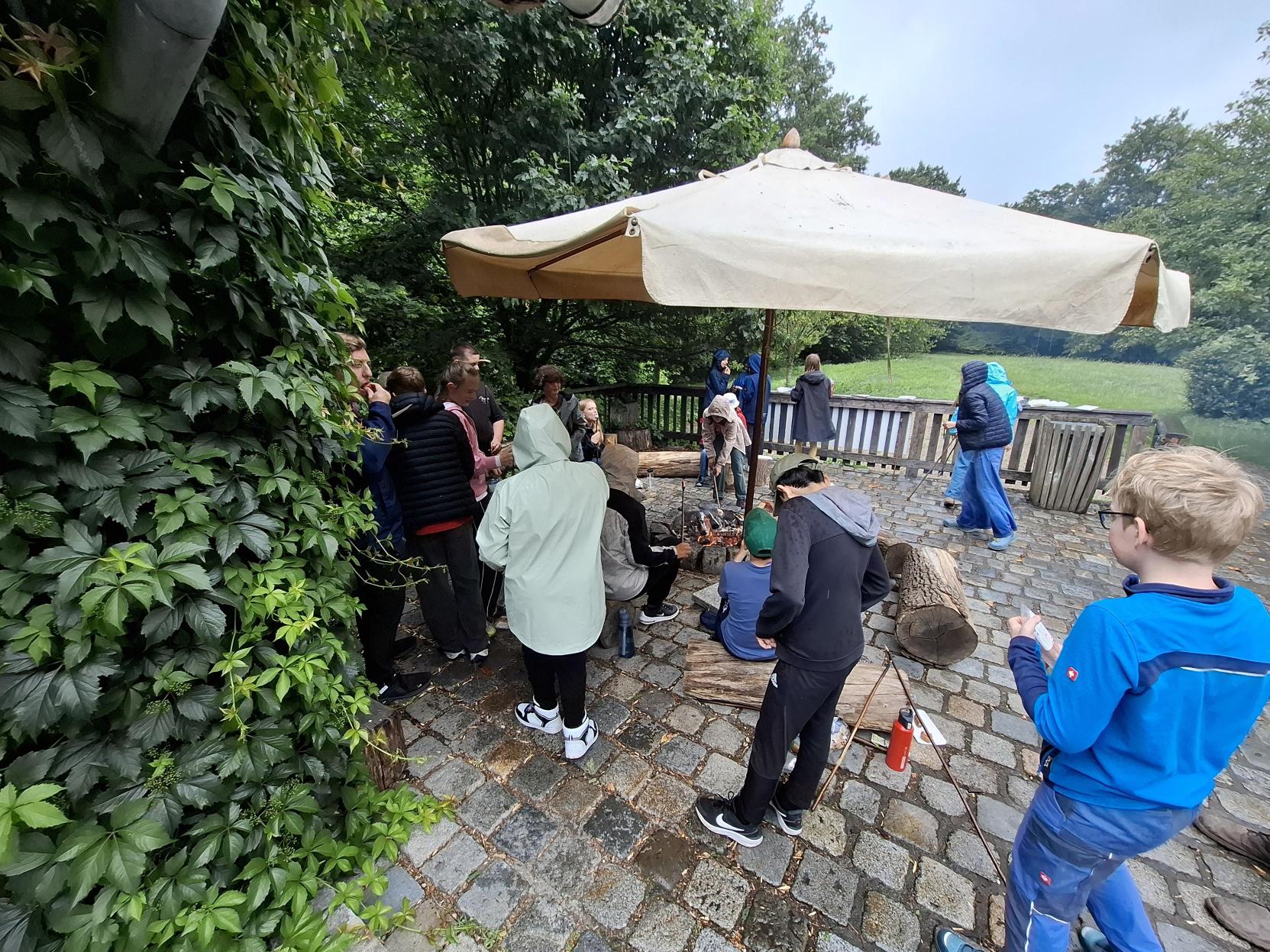 Zur Auflockerung gab es ein gemeinsames Spiel und als besonderen Höhepunkt das Grillen am Lagerfeuer – inklusive Anzünden und anschließendem Löschen des Feuers. Trotz des Regens war es ein sehr gelungener und spannender Ausflug. Die Schülerinnen und Schüler waren interessiert, begeistert und hatten viel Spaß. Besonders das gemeinsame Grillen wurde von allen als Highlight empfunden.