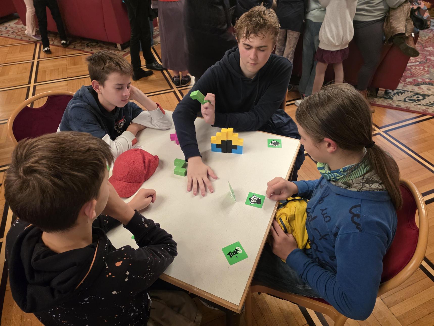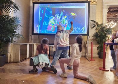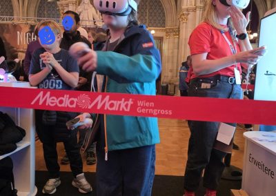 Am Nachmittag des 10. 10. 2025 suchten interessierte Kinder der Tagesbetreuung die altehrwürdigen Hallen des Wiener Rathauses auf, um bunt erleuchtet die verschiedensten Spiele auszuprobieren: Die GameCity war wieder angesagt! In den verschiedenen Räumen wurden die neuesten Ableger und Fortsetzungen beliebter Oldies bestaunt, Konsolenlenkräder durch abenteuerliche Wettrennen gelenkt, VR-Brillen getestet, im Team vor Großbildschirmen getanzt oder klassisch am Tisch gespielt, zB blind nach dem Stille-Post-Prinzip Konstrukte aufzubauen. So fand sich etwas für alle Vorlieben.