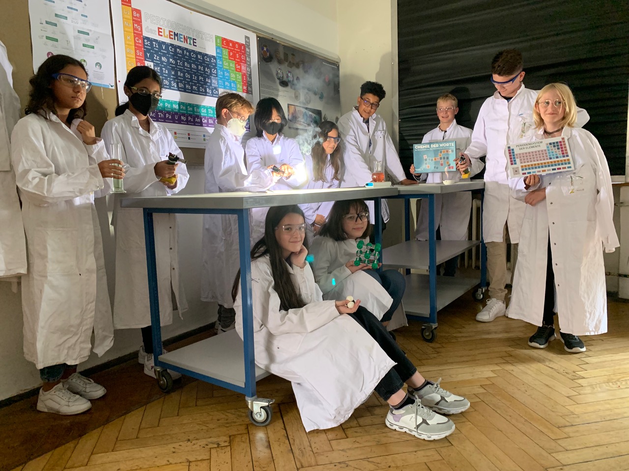 Dabei können die Schüler:innen forschendes Lernen praktizieren und Experimente aus den naturwissenschaftlichen Bereichen, Biologie, Chemie und Physik, fächerübergreifend durchführen. Zusätzlich werden gerne die Laptops eingesetzt und virtuelle Labore „besucht“.